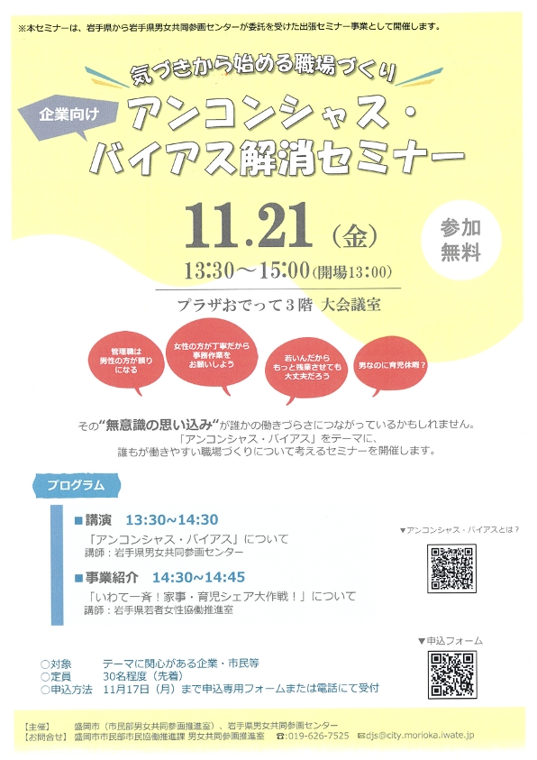 【主催】盛岡市(市民部男女共同参画推進室)、岩手県男女共同参画センター