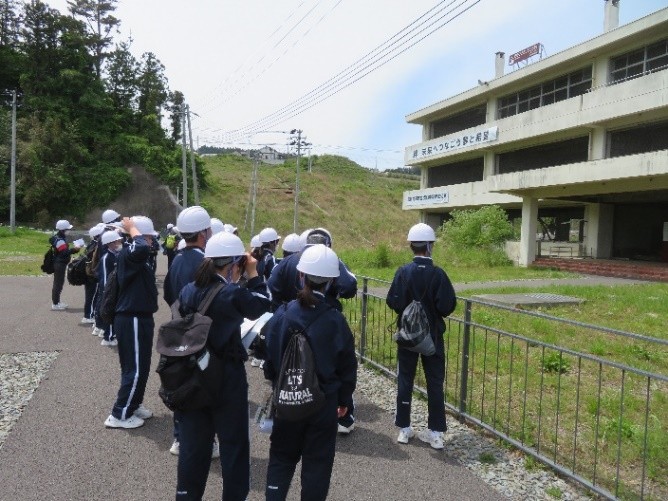 宮古市の高台に位置する宮古市立宮古西中学校は、災害時に避難所となる可能性があり、被災地見学や体験を通して、自然災害への心構えや備えについての意識を高めるとともに、避難所対応など災害時に率先して行動し、地域に貢献できる生徒を育成している。